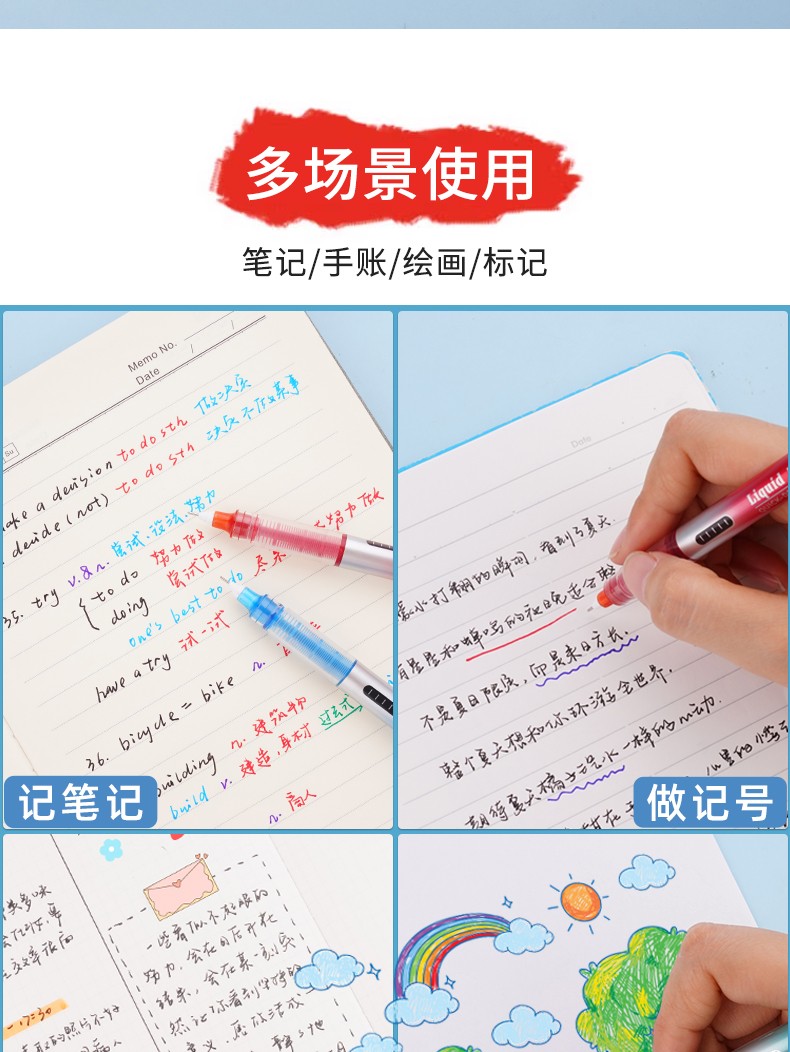 墨水顏色:淺藍/藍/綠/粉/紅/橙/紫/黑
