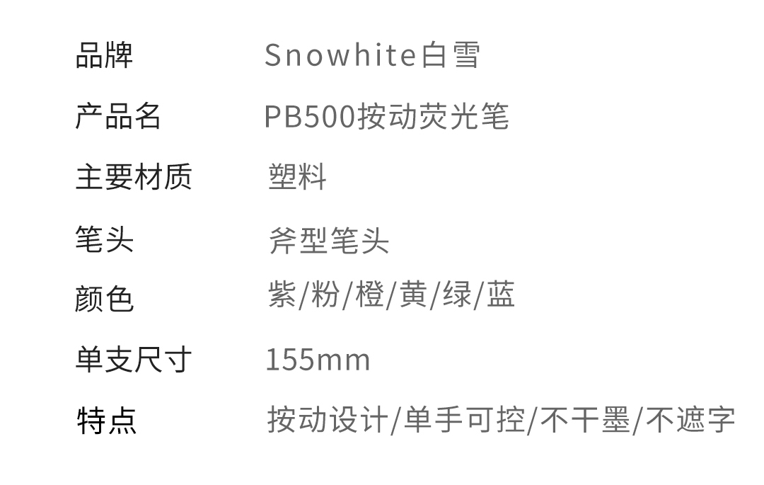 產品型號:PB500墨水顏色:黃/藍/綠/粉/橙/紫